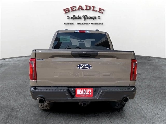 2025 Ford F-150 STX 4x4 SuperCrew for Sale in Mobridge, SD Strength, style, and technology come together in this 2025 Ford F-150 STX 4x4 SuperCrew, finished in Marsh Gray Metallic with a Black/Bronze interior. Under the hood, youâll find the efficient yet powerful 2.7L EcoBoost V6 engine paired with a 10-speed automatic transmission for confident performance on any terrain. With an EPA-estimated 20 MPG combined (18 city / 23 highway), this new F-150 delivers capability and efficiency in one tough package. 2025 Ford F-150 STX 4x4 SuperCrew â Stock #5F194 Location: Beadleâs Sales â Mobridge, SD Phone: 605-845-3671 VIN: 1FTEW2LP6SFB80559 Drivetrain: 4x4 Engine: 2.7L V6 EcoBoost Transmission: Electronic 10-Speed Automatic Exterior Color: Marsh Gray Metallic Interior: Black/Bronze Cloth 40/Console/40 Wheelbase: 145" MSRP: $58,925 (before discounts) Highlighted Features STX Appearance Package (Equipment Group 201A): 18" black-painted aluminum wheels, LED fog lamps, skid plates, and tray-style floor liners. Off-Road Confidence: 4x4 system with selectable drive modes, 6,650-lb GVWR package, and LT265/70R18C all-terrain tires. Power & Performance: 2.7L EcoBoost V6 engine with 400 lb-ft of torque for impressive towing and acceleration. Trailer-Ready: Integrated trailer brake controller, Class IV trailer hitch, and Smart Trailer Tow Connector. Technology: SYNCÂ 4 with 12" touchscreen, FordPass Connect 5G Wi-Fi hotspot, and selectable drive modes for various conditions. Safety: BLIS with Cross-Traffic Alert, Lane-Keeping System, Reverse Sensing System, and Pre-Collision Assist with Automatic Emergency Braking. Interior Functionality: Power locks and windows, cruise control, message center with trip computer, and dual sun visors. Convenience Features: Extended-range 36-gallon fuel tank and engine block heater for cold-weather starts. Dealer-Installed Options: ToughBed spray-in bedliner and ICE mudflaps for added durability and protection. Warranty Coverage: 3yr/36k bumper-to-bumper, 5yr/60k powertrain & roadside assistance. Expert Insights The Ford F-150 STX continues to earn top marks from Kelley Blue Book and Edmunds for its best-in-class capability, modern interior, and intuitive technology. Perfect for both work and recreation, the STX trim offers a bold look and impressive value in the F-150 lineup. Visit Beadleâs Sales in Mobridge