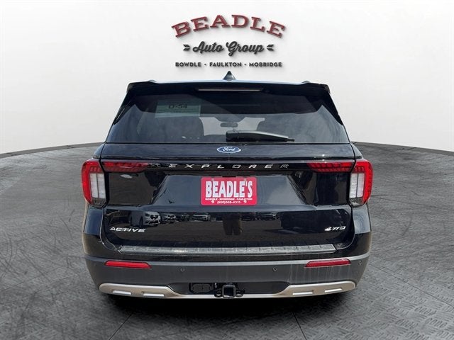 2026 Ford Explorer Active 4WD for Sale in Bowdle, SD The 2026 Ford Explorer Active 4WD delivers three-row versatility and modern connectivity for families and outdoor enthusiasts across South Dakota and beyond. With its responsive 2.3L EcoBoost engine, intelligent 4WD system, and the confidence-inspiring Ford Co-Pilot360 Assist+ safety suite, this Explorer balances daily practicality with weekend adventure capability. 2026 Ford Explorer Active 4WD â Stock #6T51 Exterior: Agate Black Metallic Interior: LT Space Gray ActiveX Insert Engine: 2.3L EcoBoost I-4 Transmission: 10-Speed Automatic Drivetrain: 4WD with 119-inch Wheelbase Display: 13.2-inch LCD Touchscreen with 12.3-inch Digital Cluster Seating: 3rd-Row 50/50 Fold Flat, Heated Front Seats, Power Drivers Seat Connectivity: Wireless Apple CarPlay and Android Auto, Ford Digital Experience with Google Maps and Play Store, SiriusXM 360L, 5G Modem, Wi-Fi Hotspot Safety: Ford Co-Pilot360 Assist+, LED Headlamps, LED Taillamps, Rear Parking Sensors Wheels: 20-inch Carbon Gray PTD 10-Spoke, All-Weather Floor Liners Rows 1 & 2 Expert Insights The 2026 Explorer Active tier is praised for its balanced approach to technology and value. See what Kelley Blue Book and Edmunds say about this generations responsive steering, quiet cabin, and the practical digital ecosystem that makes life easier. Visit Beadle Ford in Bowdle, SD Come see this 2026 Ford Explorer Active 4WD at Beadle Ford in Bowdle, South Dakota. We serve customers from Aberdeen, SD, Bismarck, ND, and Pierre, SD â all within two hours. Call us at 605-285-6202 or visit beadleautogroup.com to schedule your test drive!